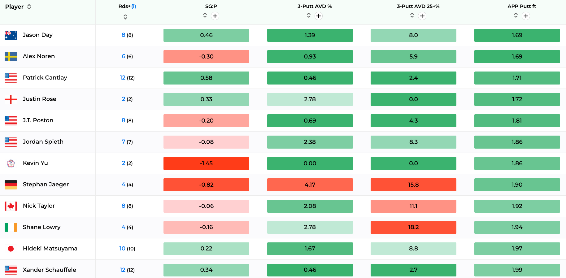 The players with the best approach putting in the field over the past three tournaments at Riviera CC.