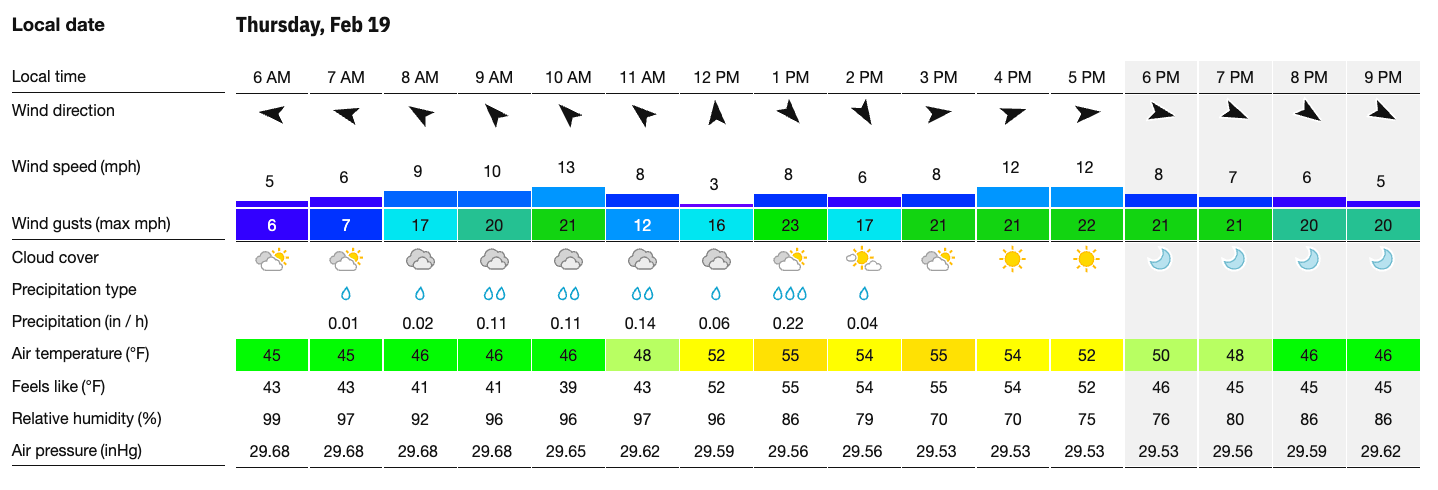 The rest of the week forecasts as great golf conditions with almost no wind. Kinda cold, but nothing extreme.