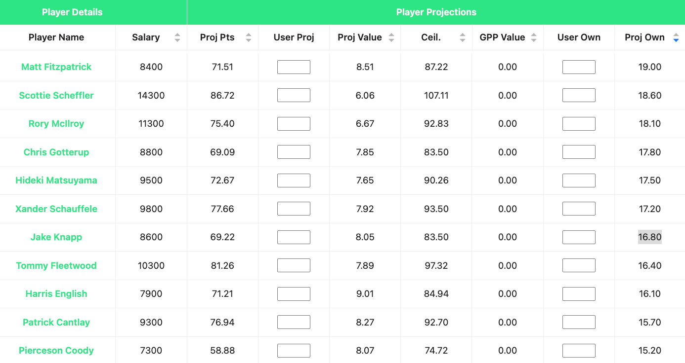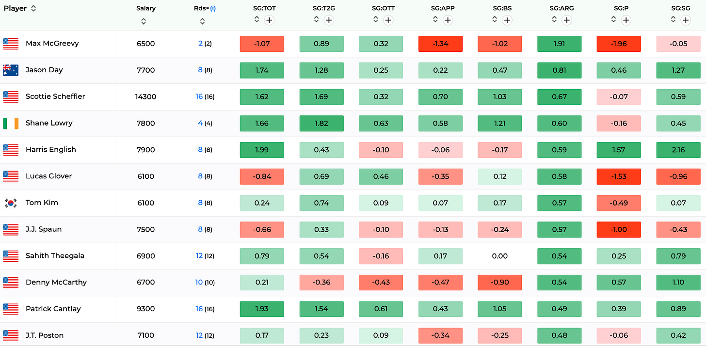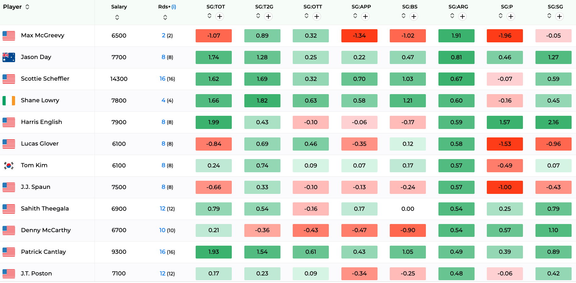 Hoey’s is a part of that small subset of cheap players who could be rotated through as the final piece in optimized lineup constructions. Hoey’s ball striking is elite, and a lucky week around the greens could be enough to propel him up the leaderboard.