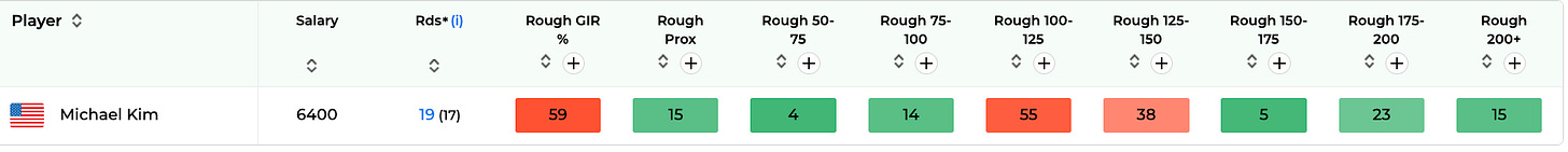 Plus, Kim has been one best of players from the rough 150+ yards and out so far in 2026. Almost 75% of approach shots will come from that distance this week.