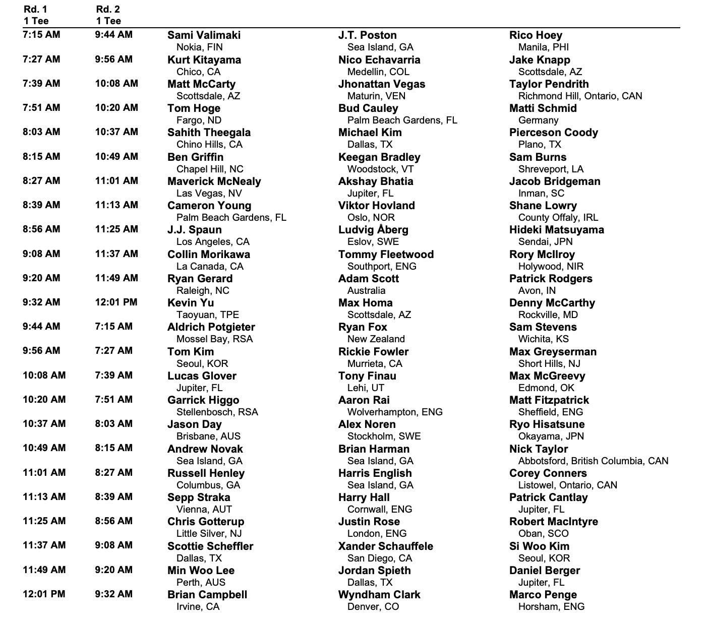 There has been a lot more rain than usual in the Los Angeles area both this winter and this week. In fact it looks like it will continue sprinkling on Thursday and being some wind along with it. Not sure if this is enough to halt play, but since the field is only 72 players, playing in threesomes for the first two rounds, it should affect everyone pretty evenly. There’s less than a five-hour gap between the first and last group Thursday so on either pole there could be a slight advantage to the later set if play isn’t delayed and they get to beat up on a softer course even in slightly higher winds. It really shouldn’t affect your process too much as most of the golfer you want to pick are going off later anyway. Of the 10 highest projected owned players on DraftKings, only No. 7, Jake Knapp (Projected 16.80%) is teeing off in the first seven groups.